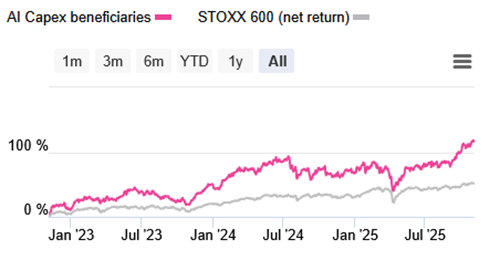 For now such speculative worries have not percolated into the 25 European capex related stocks that surf on those US AI/capex plans. AlphaValue had designed a list for risk takers on the AI Capex dynamic.