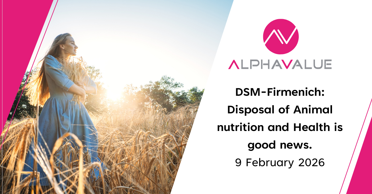 According to Reuters, DSM-Firmenich will divest its Animal Nutrition & Health business to CVC Capital Partners, in line with market expectations. The transaction has been signed at an enterprise value of approximately €2.2bn (EV/EBITDA 7.5x vs. forecasted 9x), with a potential earn-out of up to €0.5bn. DSM-Firmenich will retain a 20% minority stake in the carved-out business.