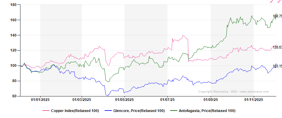 At its CMD (first since 2022), held yesterday, Glencore - part of AV’s Active List - unveiled its ambition to become one of the world’s largest copper producers. By de-risking its copper portfolio, the firm targets to produce 1mt of red metal by 2028 and via aggressive growth bets, 1.6mt by 2035. The firm also plans to start a dormant copper mine (i.e. Alumbrera) in Argentina.