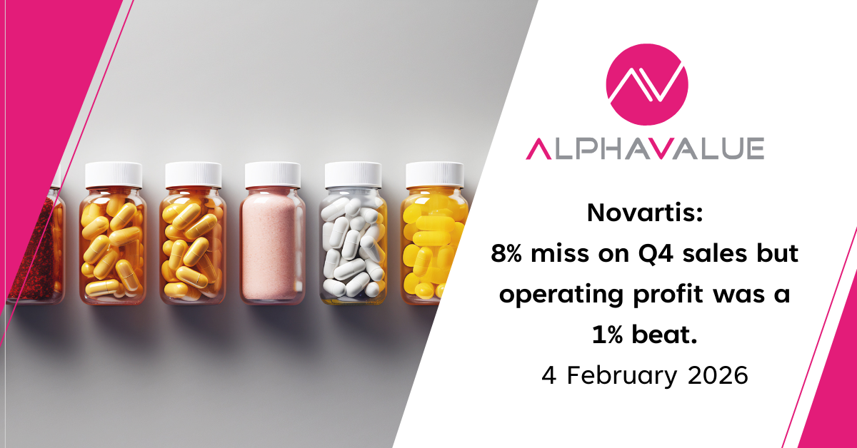 Overall, our model is under review, but we maintain our cautious stance on Novartis, which already trades at c.20% premium to the AV Big Pharma average in 2026e P/E (20.4x) terms. That said, we acknowledge Novartis’ healthy growth across key therapeutic areas, a large and well-progressing pipeline, a noteworthy R&D execution track record, and a healthy balance sheet (2026e net debt-to-EBITDA of 1.7x).
