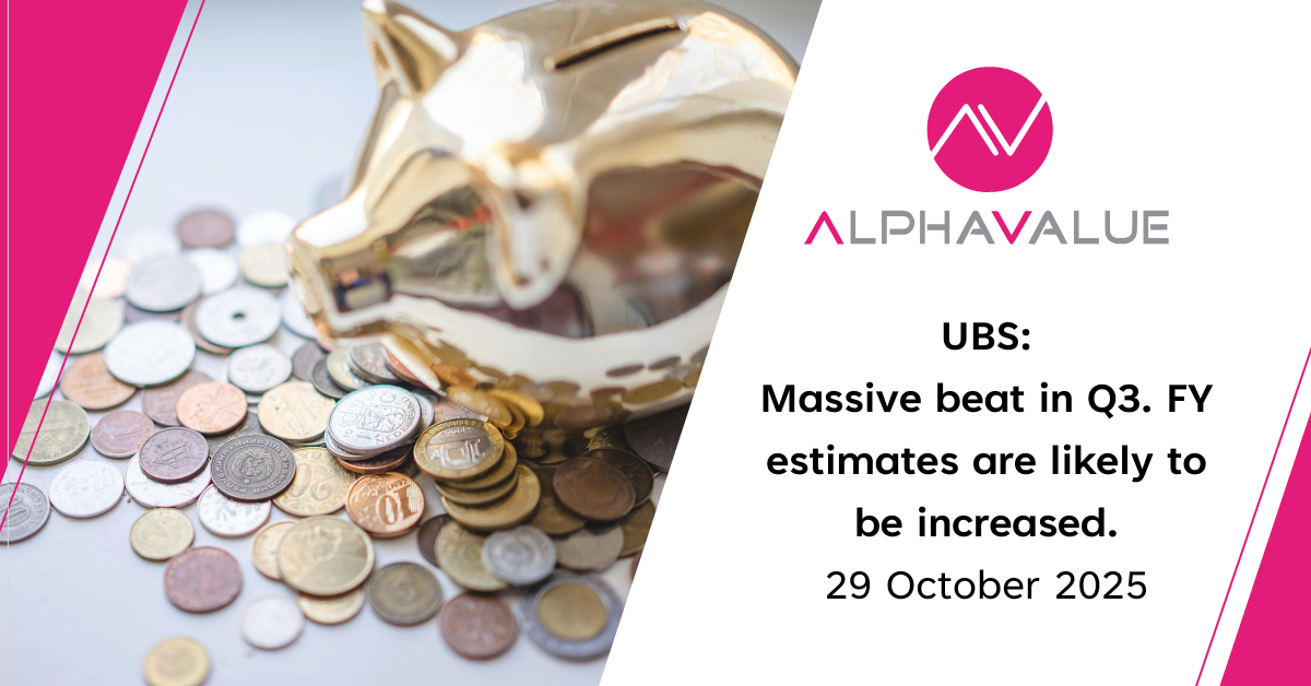 UBS delivers a cautious tone for Q4 (about flat on Q3) as one-off costs tend to be booked in Q4. Despite the more cautious tone regarding Q4, we will have to increase our FY25 numbers for the Swiss bank.